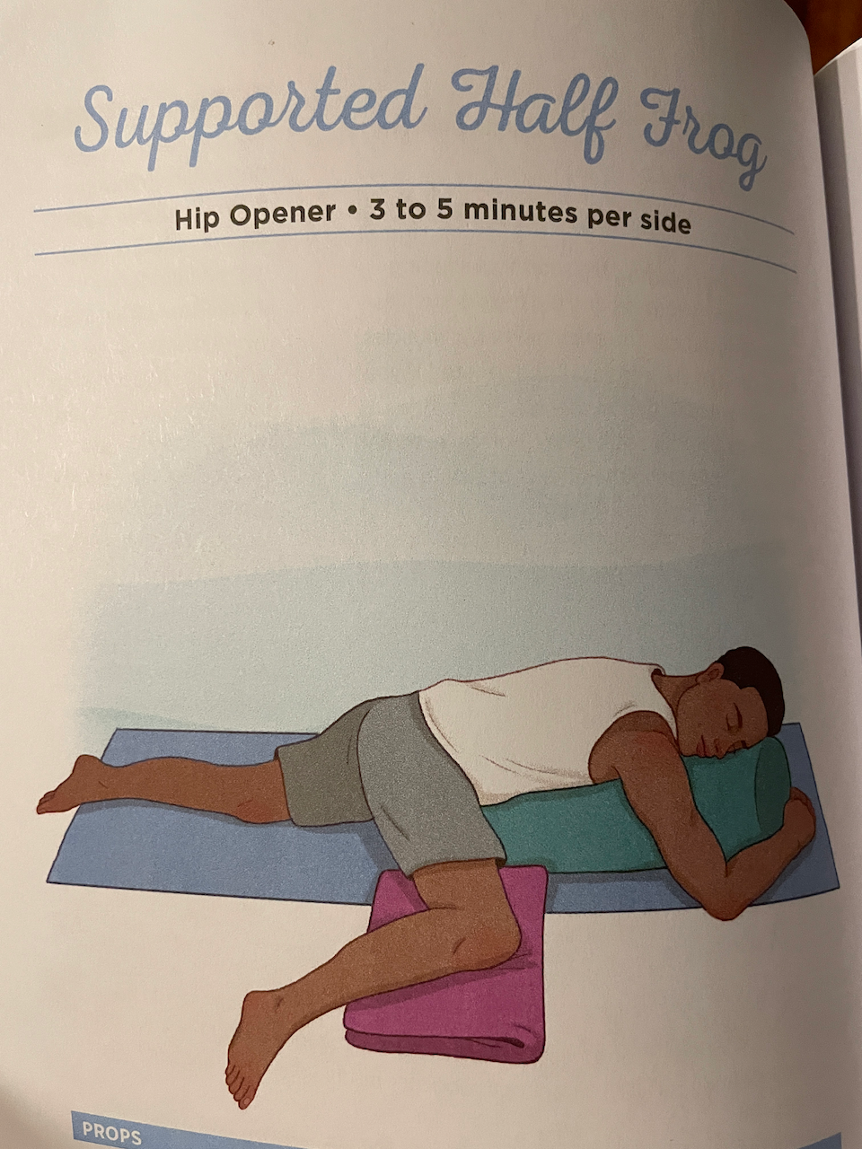 - Supported Half Frog (boster under chest, blanket under knee)