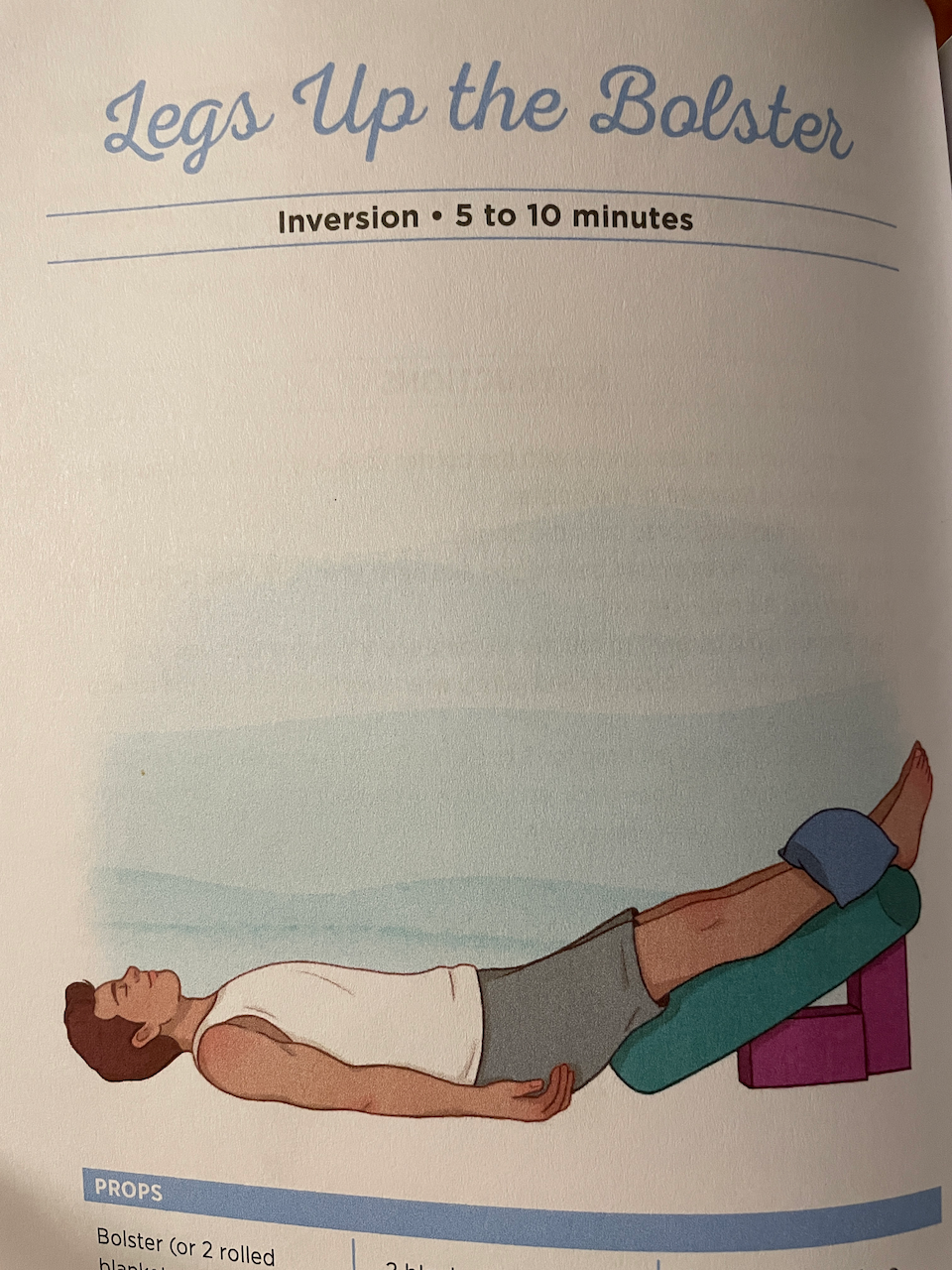 - Legs Up the Bolster (blocks and bolster under legs)
